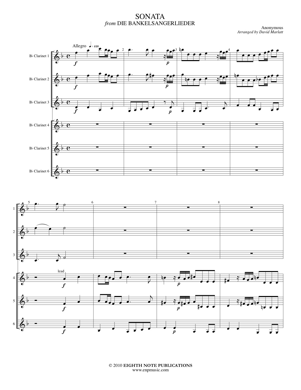 This piece is a standard in the repertoire for brass quintet thanks to an arrangement by Robert King. After Robert King published his arrangement it was thought that it may have been written by Daniel Speer. Regardless of who wrote it, the great antiphonal writing suits 6 clarinets (2 choirs of 3 clarinets each).