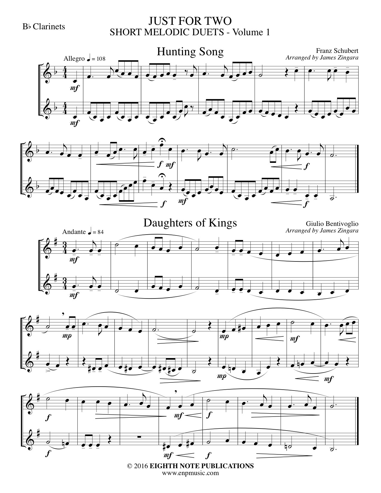 The material in these duets have been taken from a variety of public domain sources including vocal duets and instrumental works for strings, horns, flutes and even bagpipes(!); composers represent both the well-known and the quite obscure. The difficulty level of these duets ranges from quite easy to intermediate with the emphasis of relatively simple melodies in which shaping, phrasing and intonation are the primary challenges.
