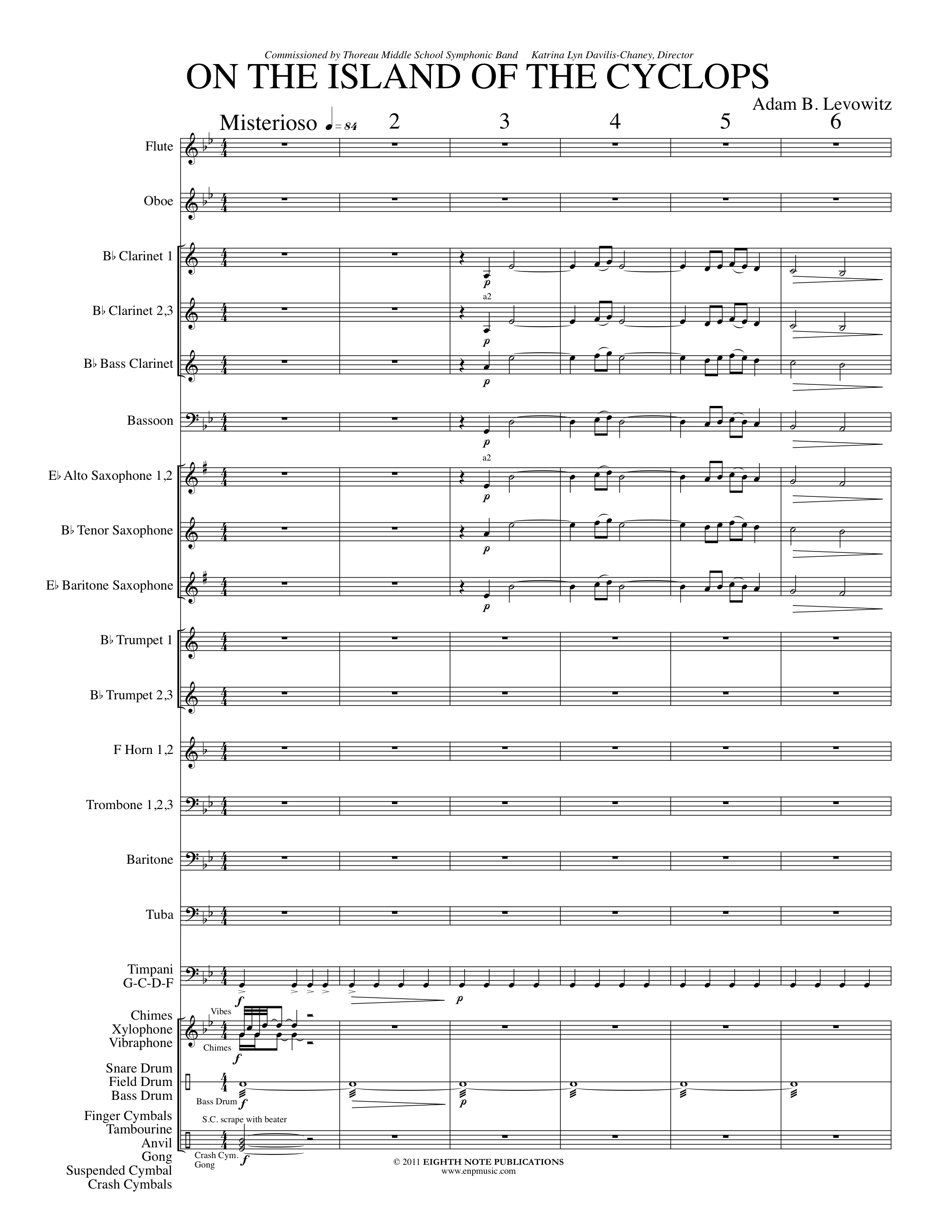 This piece features a 7/8 twist on a traditional Greek folk dance depiciting the Cyclops, the one eyed giant from Greek mythology. The dance section in the middle is bookended with dark episodes depicting setting the scene and mood for the Island of the Cyclops.