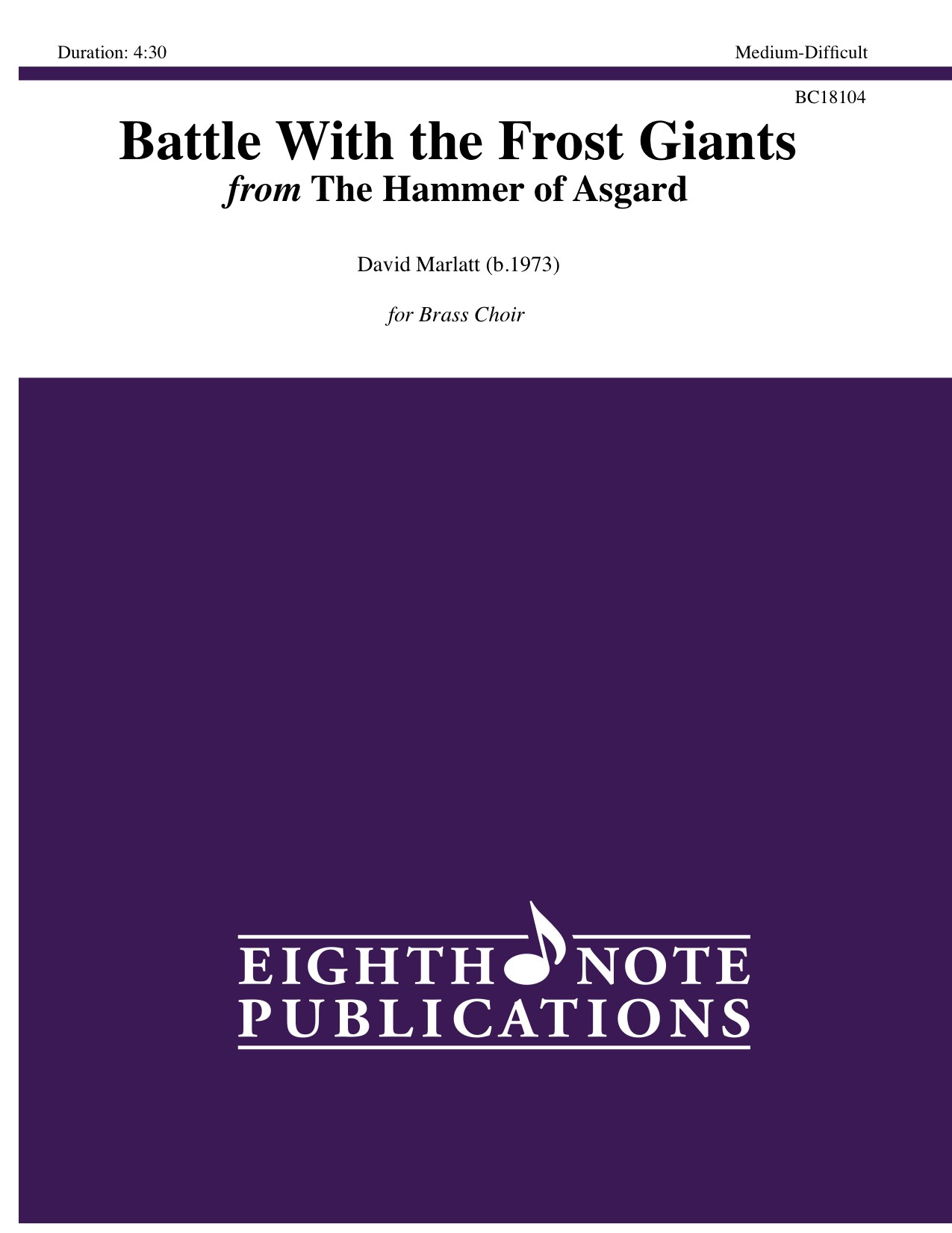 Battle with the Frost Giants is the third and final movement to The Hammer of Asgard, an original soundtrack style composition for brass and percussion. Using Norse mythology as the theme, The Hammer of Asgard introduces and explores the gods and other characters that make up these famous stories. Wailing Hollywood horns, brilliant trumpets, energetic percussion writing and powerful low brass parts make this fun to play for all and a wild adventure for audiences.