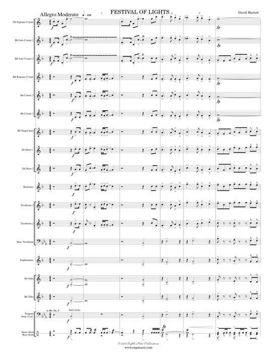 This energetic composition is the composers way of paying homage to some of his favourite compositions and composers such as John Cheetham, John Barnes Chance and the great Alfred Reed. Short musical quotations and suggestive melodic or rhythmic passages are included in the framework of this piece. The majority of the material is original and the driving rhythms, soaring lyrical themes and jazz-like harmonies are all elements Mr. David Marlatt came to know and enjoy since he began playing in concert bands.