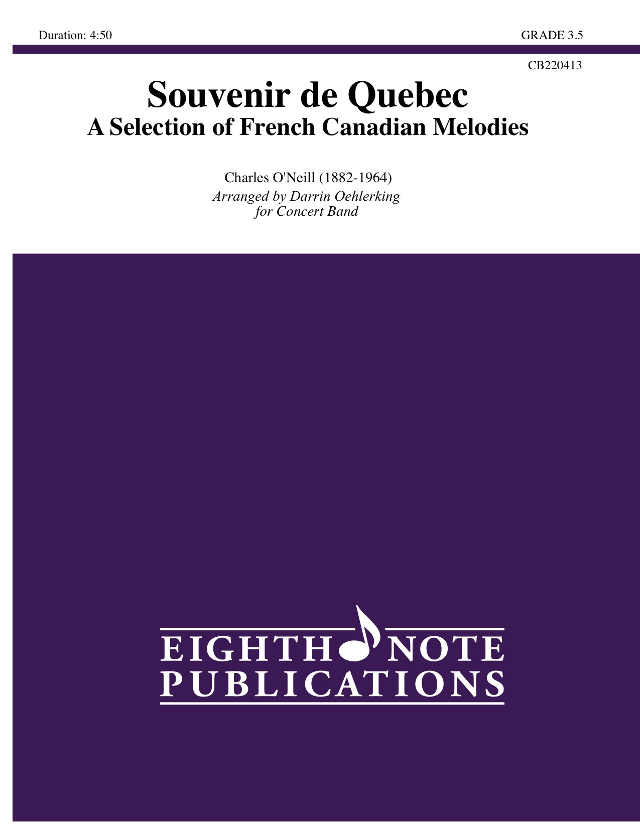 Souvenir de Quebec is a medley of famous and popular French Canadian folk songs. Colorful scoring, clever transitions and strong solo writing for flute, clarinet, trumpet and baritone make this a terrific contest or concert piece to show off every section of the ensemble.