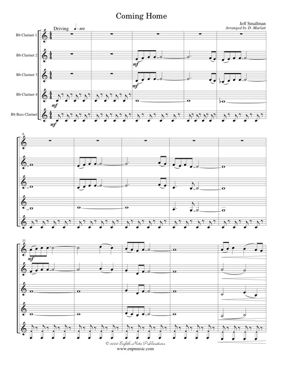 The driving bass line combined with fun and interesting melodic material make this a great piece for a young clarinet ensemble consisting of 4 b-flat clarinets and a bass clarinet. The range is limited and the technical requirements are not too great. It is a piece that can be learned in a short period of time and the catchy tune will be enjoyed by both players and audiences.