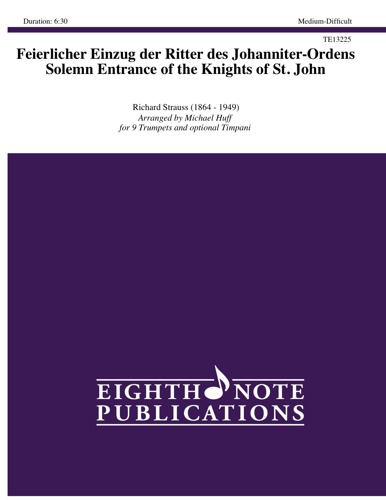 Feierlicher Einzug is a favorite among brass players in its original form as a large scale brass ensemble work. This arrangement for trumpet ensemble maintains the power and grandeur of the original and works well as a mass ensemble piece as well. Scored for 9 trumpets, with the bottom 5 voices doubling on flugel horns, this is a true tour-de-force for large trumpet ensemble.