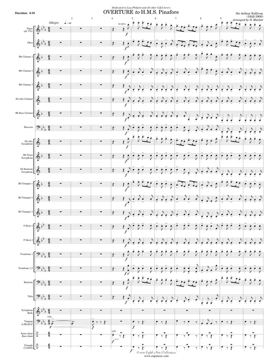 Sir Arthur Sullivan wrote many pieces for operettas but none was better received than the music to H.M.S. Pinafore. It had a terrific 700-night run once it opened and its popularity continues today. This arrangement is the Overture which captures many of the famous and tuneful themes found in that operetta. Light-hearted and fun, this music is a toe-tapper for audiences and a thrill to play for musicians.