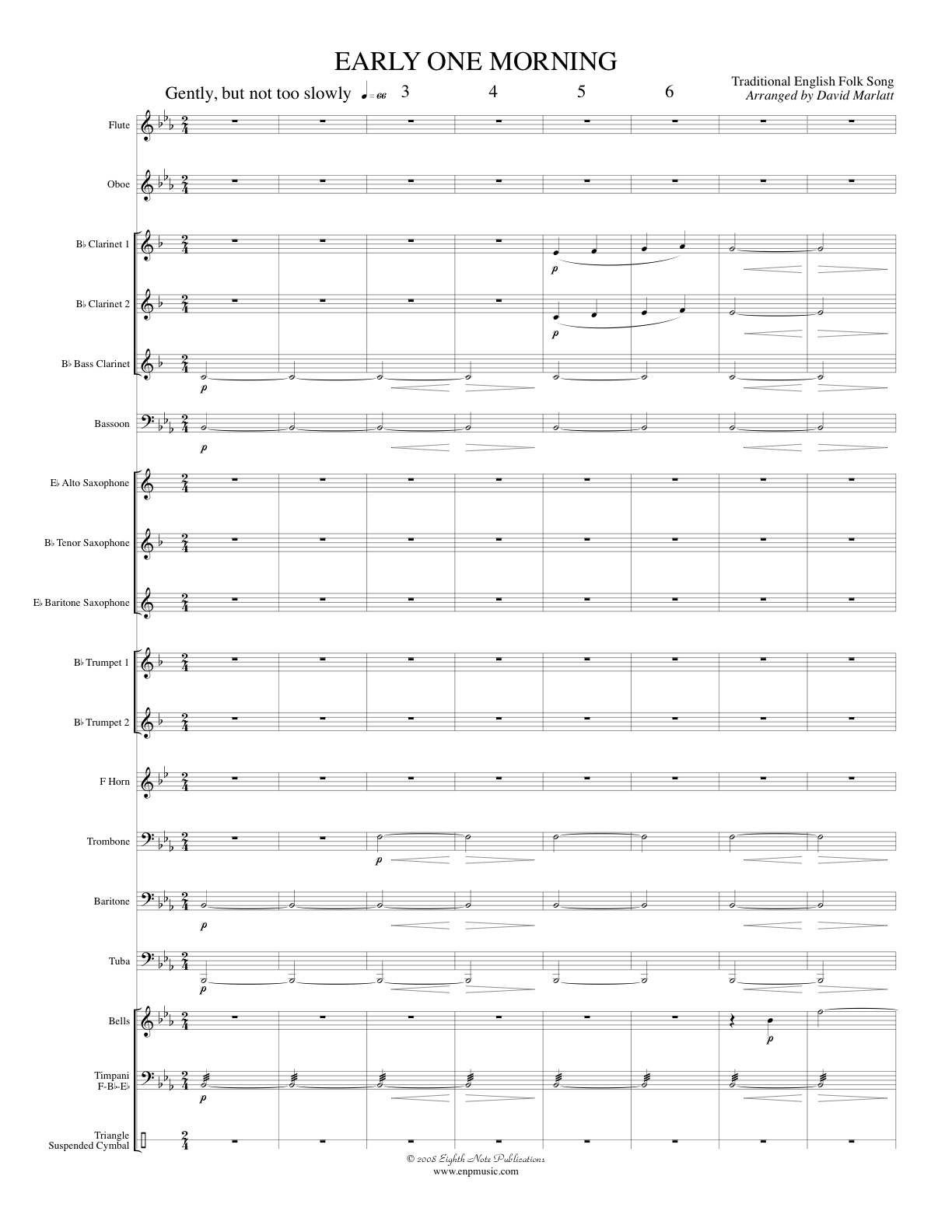 Early One Morning is a beautiful lyrical folksong that could be used as a band warmup or a contrasting piece on a concert program on at a festival. It starts quietly, off in the distance, then the melody enters in the low voices and gently builds. The haunting melody flows throughout the ensemble and comes to a peaceful close. This title is also available in the Flexible Band Series.