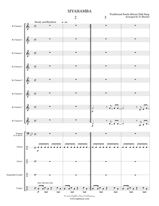 This is a truly unique arrangement for clarinets. This is a traditional South African folksong that has been adapted and arranged for clarinet ensemble and percussion. The original a capella version seemed a little thin for 8 clarinets so 5 percussion instruments were added to create the authentic rhythmic backgrounds. This would be an exciting way to open your next concert.