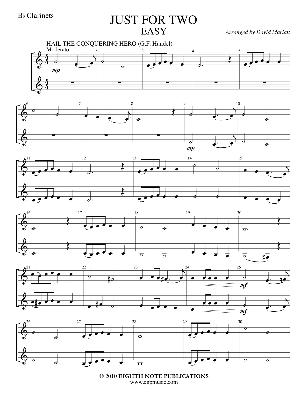 This is a collection of arrangements of well-known music set for 2 like-instruments (or may be combined with other transposing instruments). These serve as a great introduction to chamber playing and working together without a conductor. Pieces included are Hail the Conquering Hero, March Militaire, This Old Man Variations, Steal Away, Old MacDonald s Farm, De Colores, Men of Harlech, Abide With Me and William Tell Overture.